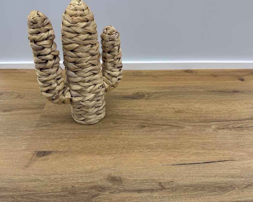 Découvrez notre sol vinyle, imitation parquet CHATAIGNE RUSTIQUE. Un revêtement qui allie authenticité et modernité. Avec sa teinte châtaigne, son aspect vieilli, ses noeuds et ses fissures subtiles, il reproduit fidèlement le charme du bois ancien tout en offrant les avantages techniques du vinyle.