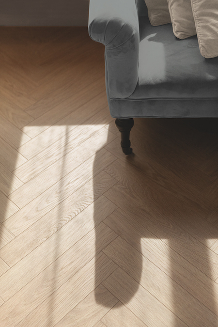 Son motif en bâton rompu reproduit à merveille l'esthétique d'un véritable parquet.
