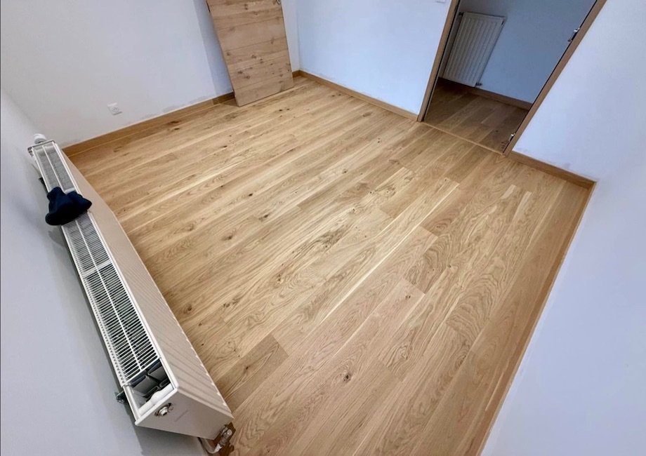 Sur le secteur d'Arras, pose d'un parquet contrecollé chêne POLAR huilé