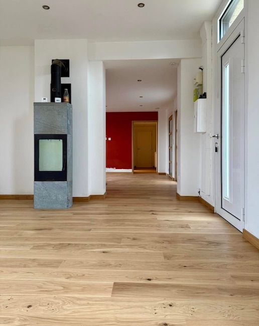 Ce projet illustre parfaitement comment un parquet bien choisi et posé avec soin peut transformer un intérieur en un espace unique et accueillant