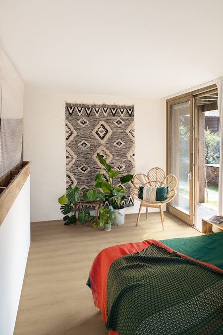 Son motif en bâton rompu reproduit à merveille l'esthétique d'un véritable parquet.