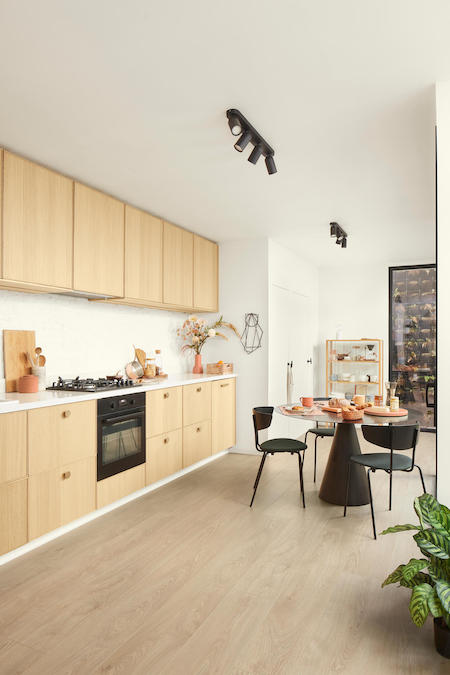 Un sol clair pour ​illuminer la pièce tout en conservant l'aspect bois merveilleusement naturel !