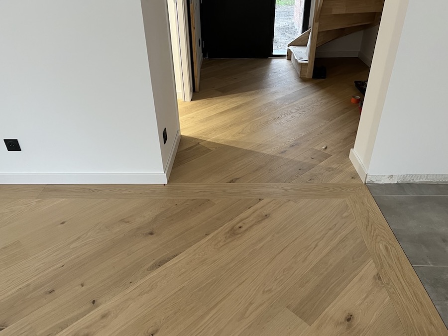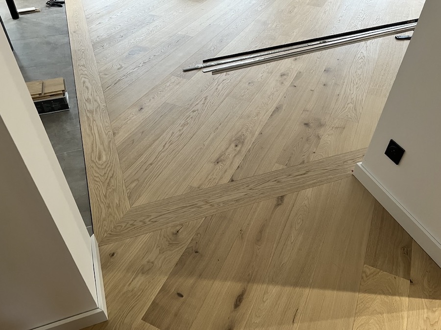 Le résultat final offre un sol à la fois contemporain par sa diagonale affirmée, et authentique grâce au charme naturel du chêne.