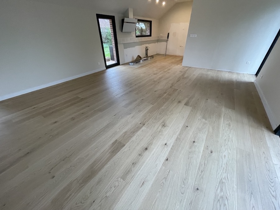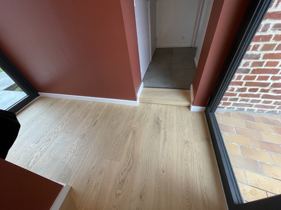 À Ennevelin , nos clients ont fait appel à ID PARQUET suite à un dégât des eaux, pour le remplacement complet du sol de leur rez-de-chaussée comprenant la salle à manger, le séjour et la cuisine semi-ouverte.