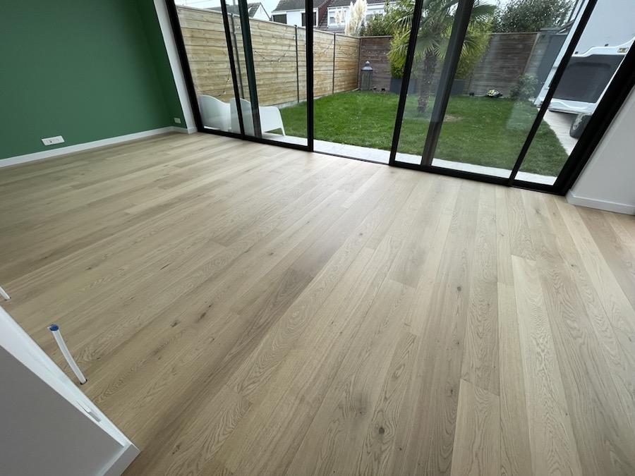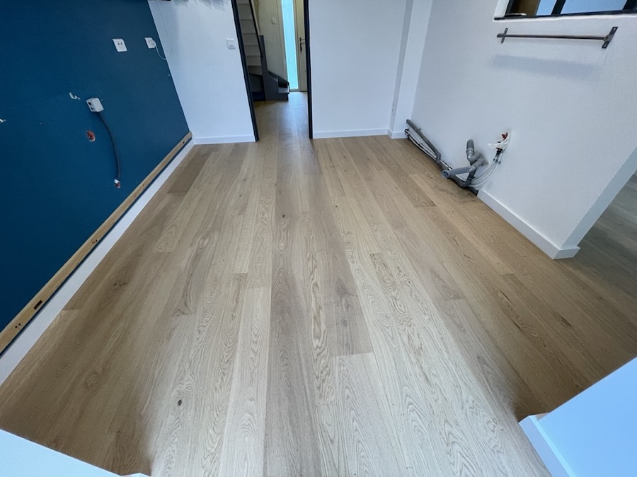 Grâce au savoir-faire de nos poseurs, le résultat offre un sol dynamique, élégant et parfaitement ajusté, révélant toute la richesse du chêne.