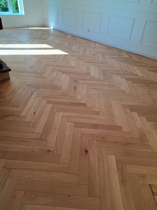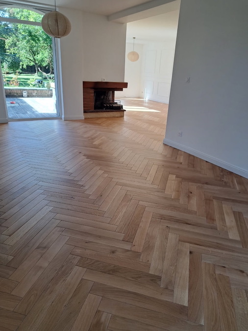 Réalisation d'un parquet en chêne massif posé en bâton rompu à ACHEVILLE, secteur d'ARRAS.