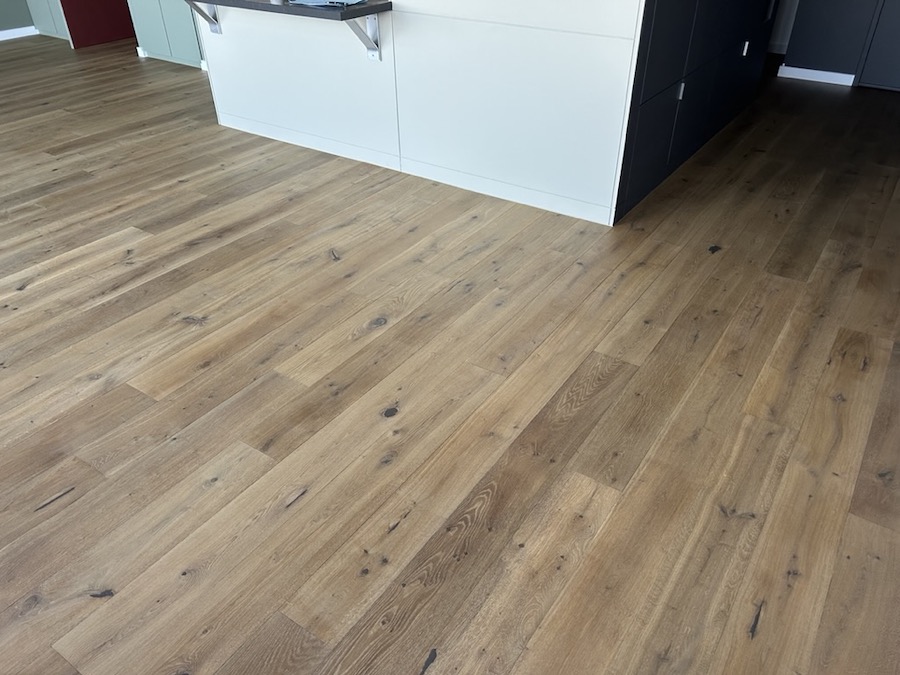 Résultat : un espace lumineux et contemporain, sublimé par un parquet qui révèle toute la noblesse et la vivacité du chêne.