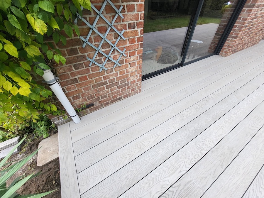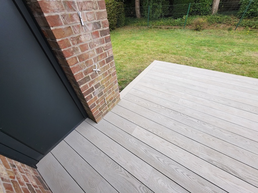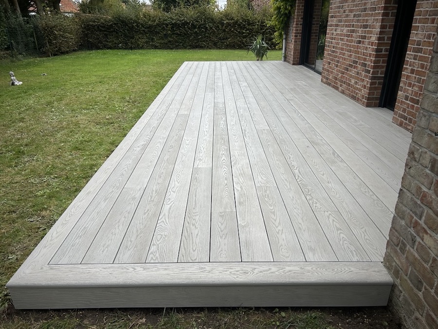 Dans ce vaste jardin verdoyant des Hauts de France, nos clients souhaitaient profiter d'un espace extérieur élégant et durable. Leur choix s'est porté sur une terrasse en résine minérale - CHÊNE FUMÉ. Une teinte grisée, subtilement fumée, qui apporte modernité et raffinement, tout en s'intégrant parfaitement à l'environnement.